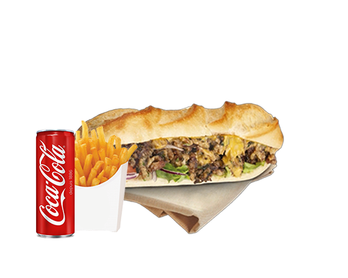 Bavette de bœuf, salade, oignons rouge, poivron frits, cheddar