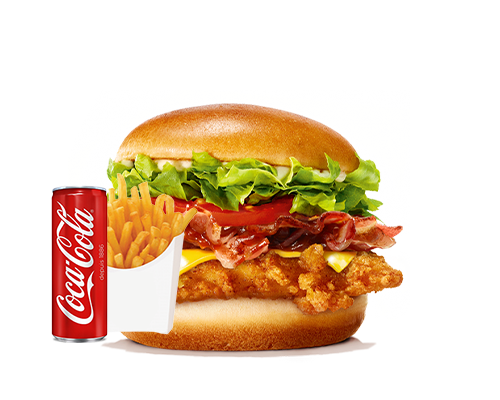1 poulet pané croustillant, salade, cheddar, oignons rouges et bacon