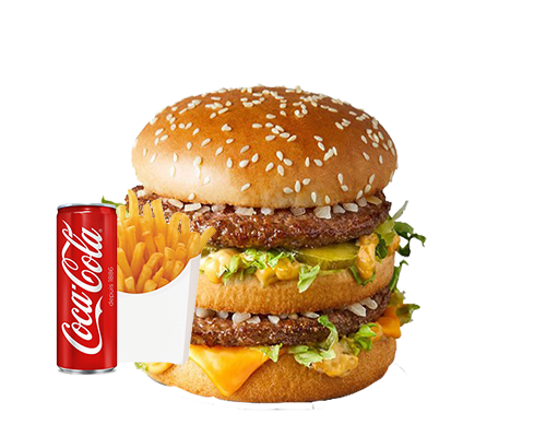 2 steaks de 45g, salade, cheddar, cornichon, et oignons rouges